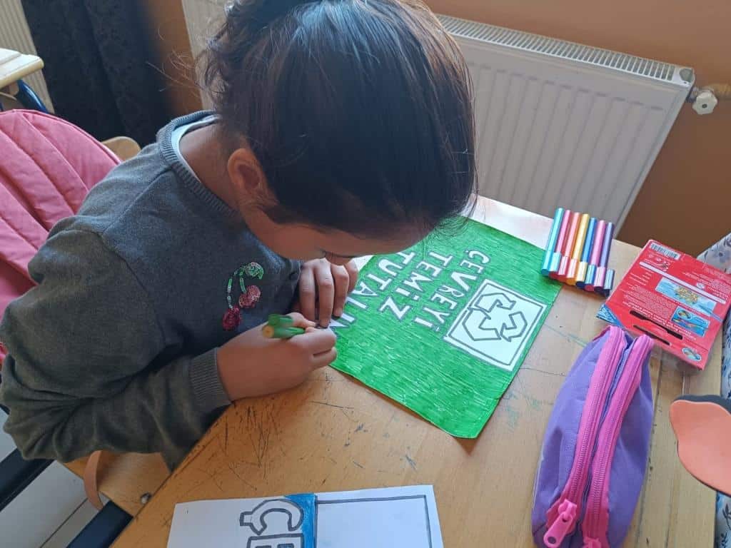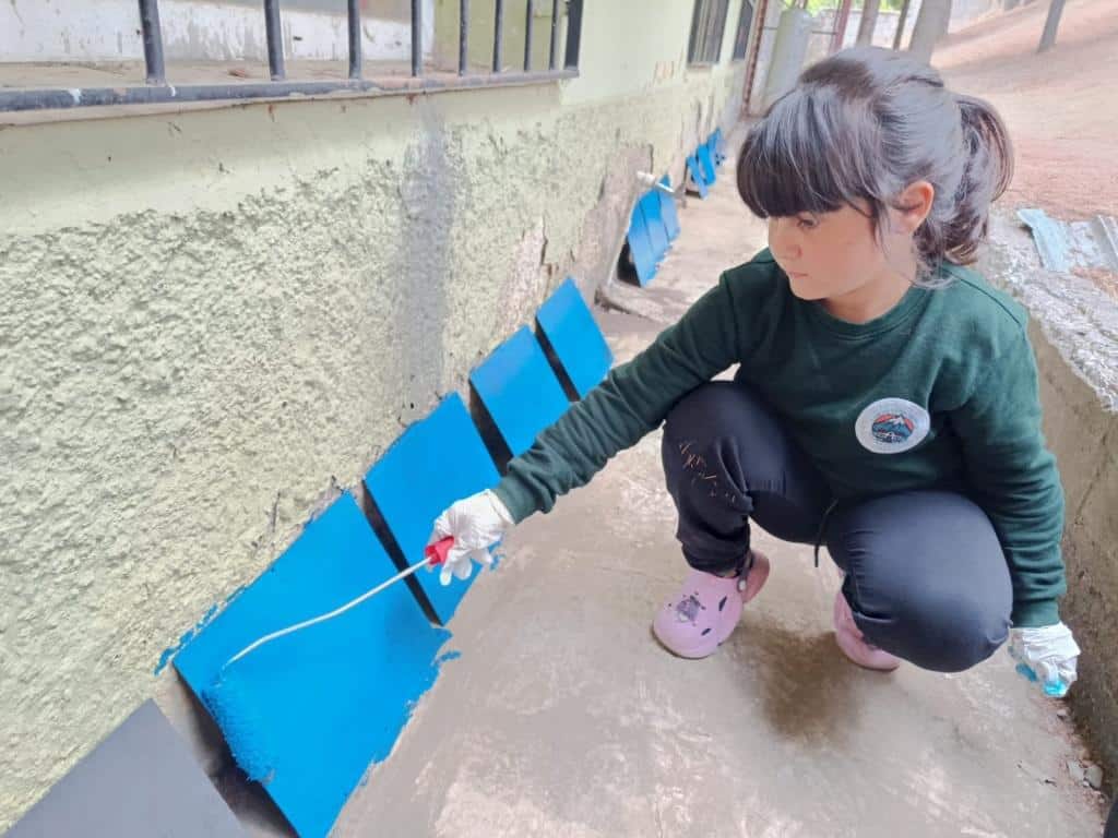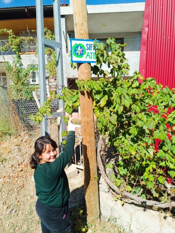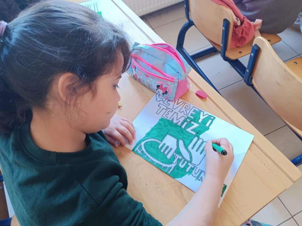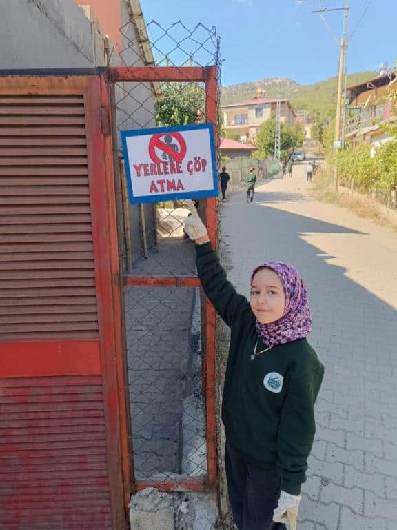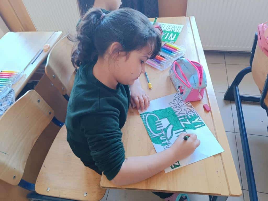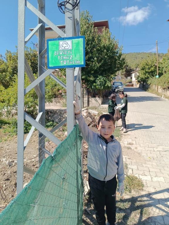 Son olarak, çevre duyarlılığını artırmak amacıyla hazırlanan bilgilendirici tabelalar, okulun çeşitli alanlarına asılarak kalıcı bir farkındalık ortamı oluşturulmuştur.
